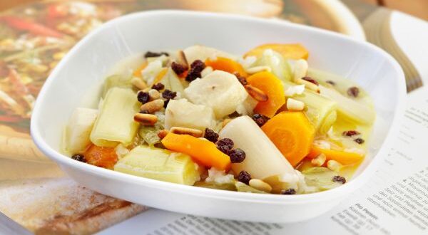 Kuşüzümlerini sıcak suda 10 dakika kadar bekletin. Soğanı soyup halka şeklinde doğradıktan sonra tuz ile iyice ovun. Pırasaları temizleyip yarım parmak uzunluğunda, verev şeklinde kesin. Havuçları soyup halka şeklinde kesin. Ayva ve kerevizin kabuğunu soyup küp şeklinde doğradıktan sonra 1 limonun suyunu sıkıp karıştırın. Tencerenin dibine pırasaları yayın. Üzerine sırasıyla havucu, soğanı, ayvayı ve kerevizi yerleştirin. En son tuzunu, dolmalık kuşüzümleri ile şekeri serpin, zeytinyağını ve suyunu dökün. Çok kısık ateşte pırasalar yumuşayıncaya kadar yaklaşık 40-45 dakika pişirin. Yemeği ocaktan almaya 5 dakika kala mandalina veya portakal suyunu ekleyin. Ateşi yükseltip meyve suyunu hafif çektirin. Ocaktan alın. İsteğe göre üzeri için, tavada yağsız olarak kavrulmuş dolmalık fıstıkları serpebilirsiniz. Ilık veya soğuk servis yapın.
