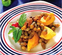 Soğanı ince ince kıyın. Tencerede sıvı yağın yarısını kızdırıp içine soğanları ekleyin ve etlerle birlikte 5-6 dakika kavurun. Tuzunu, karabiberini ve bir parça suda erittiğiniz safranı ekleyin. Birlikte tekrar birkaç kere çevirin. Daha sonra etlerin üzerine çıkacak kadar sıcak su ilave edin. Maydanozları yıkayıp ayıklayın, sapları ile birlikte ete ilave edip kaynamaya bırakın. Ayvaları dörde bölüp temizleyin. Her dilimi ikiye kesip kararmasın diye suya atın. Etleri iyice pişirdikten sonra etleri bir tabağa alıp sıcak tutun. Tencerede etlerin piştiği suya ayvaları koyun ve 30 dakika süreyle pişmeye bırakın. Bamyaları temizleyip yıkayın. Yarım su bardağı sıvı yağ ile birlikte tencereye koyun. Tuz, karabiber serptikten sonra biraz su ilave edip, pişirmeye bırakın. Bamyalar pişince tencereyi bir kenara bırakın. Büyük servis tabağının kenarına sıcak tuttuğunuz etleri sıralayın. Etin sosunda pişmiş ayvaları etlerin ortasına dizin. Daha sonra da bamyaları tam ayvaların ortasına koyun. Üzerine ayvaların piştiği et suyunu gezdirip sıcak sıcak servis yapın.