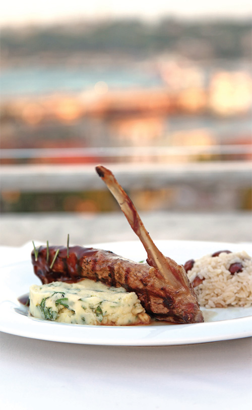 Kuzu karskileri zeytinyağı ve tuzla birkaç saat marine ettikten sonra, yağsız ızgara tavada ve orta ateşte etleri pişirin. Etler piştikten sonra tavada kalan et suyuna az miktarda su ilave edin, hafif kaynatıp karamelize ettikten sonra sosusunuz hazırdır. Sosa biberiye ekleyin. Tabağa aldığınız Kuzu karskileri, pirinç, patates püresi ve sosla servis edin.