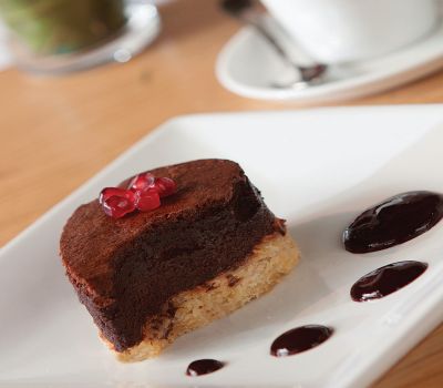 Yumurta beyazını çırpıp, köpük haline getirin. Yavaş yavaş 150 gram şeker ekleyin. Bademleri doğrayıp ufaltın ve yumurta beyazı karışımına ekleyin. Bu karışımı yağlanmış kelepçeli kalıba dökün, üstünü düzeltin ve 180 dereceye ayarladığınız fırında yaklaşık 15 dakika süreyle pişirin. Tereyağı ve glütensiz unu ocakta kısa bir sure kavurun. Sütü ilave edin. Kaynayınca erimiş bitter çikolata katın, bir süre pişirildikten sonra soğumaya bırakın. Yumurta sarısı ve 25 gram şekeri makinede kabartın ve soğumuş çikolatalı karışımı bu karışıma ekleyin. Bu karışımı da önceden pişirdiğiniz yumurta beyazlarının üzerine dökün ve tekrar 180 dereceli fırında yaklaşık 20 dakika pişirin. Fırından çıkarıp soğumaya bırakın.