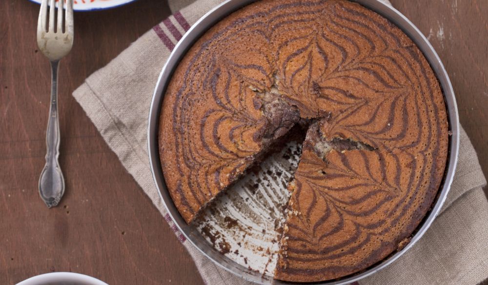 Yuvarlak tepsi şeklindeki kek kalıbını yağlayın, Küçük bir kepçe beyaz hamurdan çay tabağı küçüklüğünde dökün ve zaman kaybetmeden diğer hamurdan aynı miktarda alıp üzerine dökün. Bu işlemi her iki hamur bitene kadar (25-30 kez) devam edin. En son kürdan yardımı ile dıştan içe doğru çizgiler çekin daha sonra orta merkezden dışa doğru çizin. Önceden ısıtmış olduğunuz 180 derece fırında 20-25 dakika pişirin.