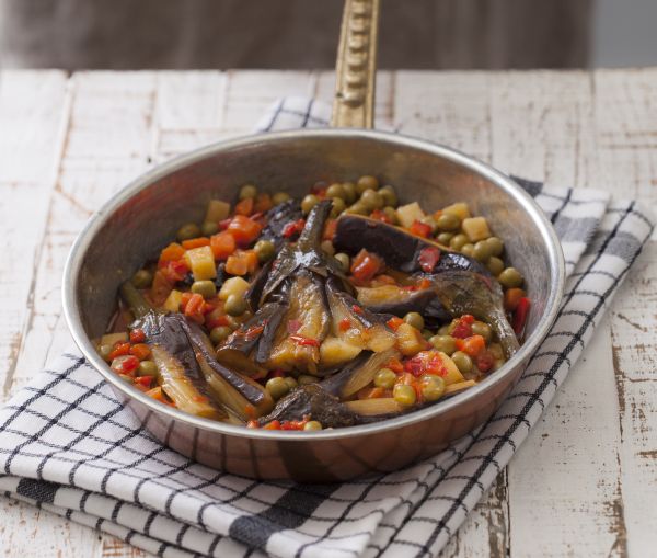 Patlıcanları alacalı soyduktan sonra ortadan ikiye kesin. Her parçayı bir tarafı tamamen kopmayacak şekilde dört parçaya kesin. Patlıcanları tuzlu suda bekletin. Daha sonra süzüp kağıt bir havluyla iyice nemini alın. Birkaç çorba kaşığı sıvıyağ ilave edilmiş kızgın yağda her tarafını kızartın. Garnitürleri, tuzu, rendelenmiş domatesi, sarımsakları ve 1 çay bardağı kadar suyu ekleyin. Birkaç taşım kaynattıktan sonra ateşi kısın. Sebzeler yumuşayıncaya kadar pişirin. Ocaktan alın, sıcak veya ılık servis yapın.