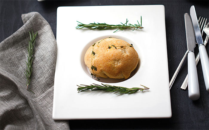 Elenmiş unu, oda ısısında yumuşamış tereyağını, bir tutam tuzu ve mayayı hamur yoğurma kabına aktarın. Yavaş yavaş su ilave ederek pürüzsüz bir hamur elde edin. Hamuru top şeklinde toparlayın. Üzerini örtün, yarım saat bekletin. Tencereyi ocağın üzerine alın iyice ısınınca etleri ekleyin. Etler suyunu salıp çekene kadar orta ateşte kavurun. Kabuğunu soyduğunuz bademleri ve arpacık soğanları ekleyin. 10 dakika kavurduktan sonra zerdeçal ve tuzu ilave edin. Birkaç dakika daha kavurup ocaktan alın, kıyılmış dereotunu ilave edip tatlandırın. Karıştırıp soğumaya bırakın. Dinlenmiş hamuru 4 eşit parçaya ayırın ve her hamuru iki yağlı kağıt arasına alarak merdane yardımı iki ile 1 cm kalınlığında açın. Taze kekik dallarını hamurun üzerine yerleştirip elinizle bastırarak hamurun içine kaybolmayacak şekilde gömülmesini sağlayın. Porsiyonluk yuvarlak ve çukur kabın içine yağlı kağıt serin. Hamurun dereotu tarafı yağlı kağıda değecek şekilde yerleştirin ve içine etli karışımı dökün, hamurun kenarlarından artan bölümünü de etlerin üzerini kapatacak şekilde tamamlayın. 180 derece fırında 30-35 dakika pişirin.