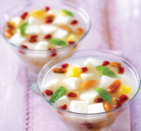 • 1 kase karışık meyve (ananas, nar taneleri, şeftali)