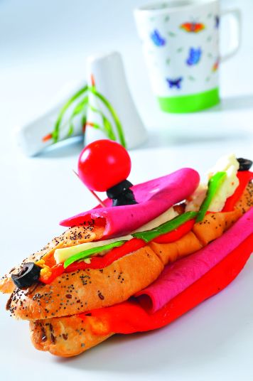 Jambonu, zeytinleri, tulum peynirini ve domatesleri sandviçin içerisine yerleştirin.