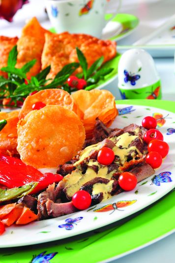 Sos için; Mayonez, hardal, süt ve karabiberi iyice karıştırıp etlerin üzerine dökerek servis yapın.