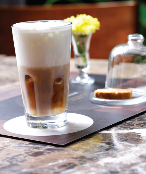 Servis bardağını buzla doldurun. Üzerine sırasıyla karamel şurubunu, esspressoyu, sütü ve blender yardımı ile köpük haline getirdiğiniz kremayı ilave edin. Hemen servis yapın.