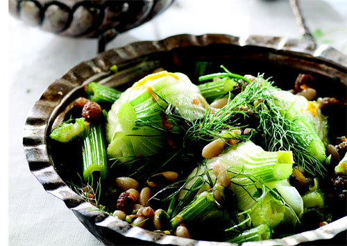 Rezenenin dallarını incecik kıyıp, köklerini boylamasına ikiye kesin. Ayrı bir yerde kıyılmış taze soğan ve dolmalık fıstığı zeytinyağında 2 dakika soteleyin. Su, rezene kökü ve saçını ilave edin. Portakal kabuğu, dut, tuz, toz şeker ve tane karabiber ekleyip 20 dakika pişirin. Rezene köklerine soğanlı harcı doldurup servis yapın.