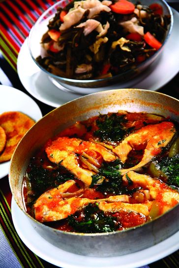 Domatesi blendır yardımıyla çekin. Sarımsakları ince ince doğrayın. Yeşilbiberleri halka şeklinde doğrayın. Hepsini birlikte karıştırıp sos haline getirin ve 5 dakika kısık ateşte soteleyin. Lekerda hazırlanmış balıkları tepsiye dizin. Hazırlamış olduğunuz sosu balıkların üzerine yaydıktan sonra bir çay bardağı su ilave edip, tepsinin üstünü kapatarak kısık ateşte pişirin. Servise vereceğiniz zaman üzerine çiğden maydanoz serpin.