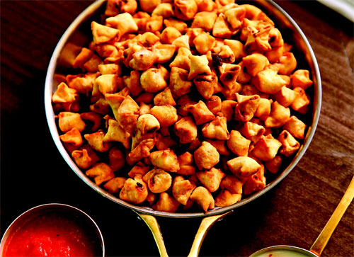 Unu eleyin. Ortasını havuz gibi açıp önce tuzu sonra da suyu ilave edin. Pürüzsüz bir hamur elde edene dek yoğurun. Hamuru toparladıktan sonra iki eşit parçaya bölün. Her hamuru avucunuzda yuvarladıktan sonra ıslak bez arasına alın. Hamurları bu şekilde yarım saat dinlendirmeye bırakın. İç malzemesi için; Kıymayı, rendelemiş soğanı, tuzu, karabiberi ve kimyonu bir kasede yoğurun. İç malzemeniz hazırdır. Dinlenen hamurlardan bir tanesini un serpilmiş tezgahın üzerine yayın. Önce merdane ile sonra da oklava yardımı ile açın. Açtığınız yufkayı boyuna, daha sonra da enine keserek dikdörtgene yakın çok küçük kare hamurlar elde edin. Her hamurun ortasına kıymalı karışımdan yerleştirin. Hamurlardan bir tanesini elinize alın, isteğe göre her iki baş ve işaret parmağınızı kullanarak hamurların kenarlarından tutup ortasında sıkıca yapıştırın veya her iki ucundan tutarak üçgen hamur elde edecek şekilde yapıştırın. Mantı hamurlarını un serpilmiş bir alanda her tarafına un bulaşacak şekilde muhafaza edin. Mantı hamurunu isterseniz kızgın yağda kızartabilir isterseniz birkaç kaşık yağ ile fırçalayıp önceden ısıtılmış 200 dereceye ayarlı fırında kızartabilirsiniz.