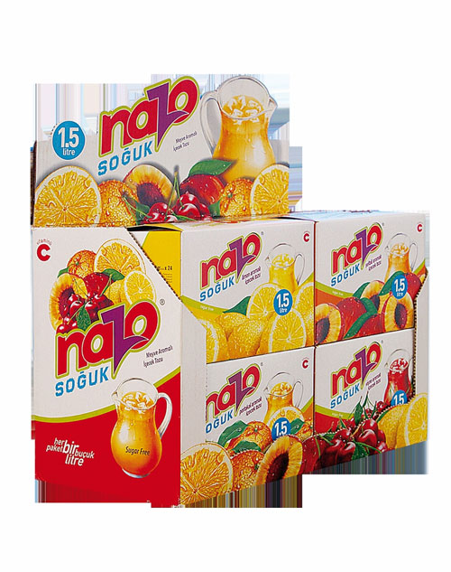 Meyvelerin gerçek tatlarını, bir buçuk litrelik buz gibi Nazo paketlerinde sunan Nazlı Gıda, yaz sıcaklarının en serin alternatifini sunuyor.
