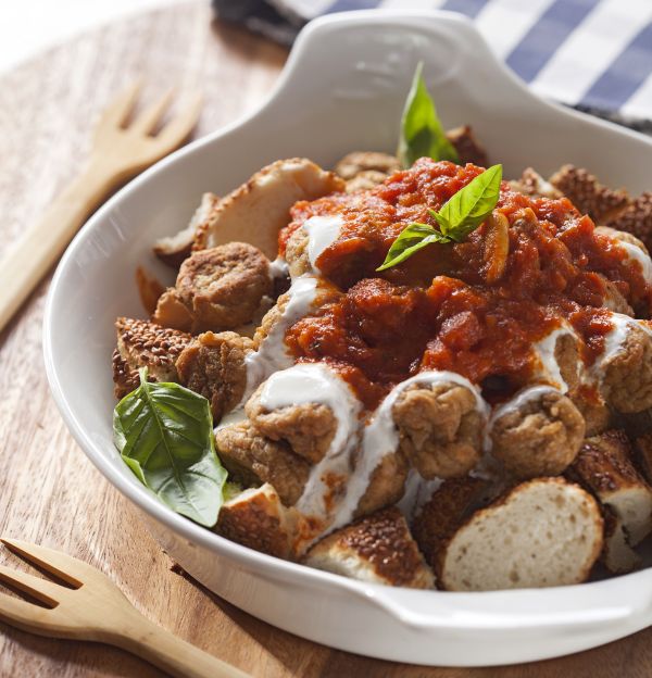 Sos için; Tüm malzemeyi sos tenceresine alın. Önce yüksek ateşte birkaç taşım kaynatın, daha sonra orta ateşte 15 dakika kaynatın. Tuz ve kimyon ekleyip tatlandırın. Sosunuz hazır. Simitleri küçük parçalar halinde dilimleyin. Isıya dayanıklı kaba aktarın. 200 dereceye ayarlı fırında 10 dakika kızartın. Fırından alın, üzerine az yağla tavada kızarttığınız köfteleri yayın, köftelerin üzerine isteğe göre çırpılmış süzme yoğurdu dökün. En son hazırladığınız domatesli sosu dökün. Hemen servis yapın.