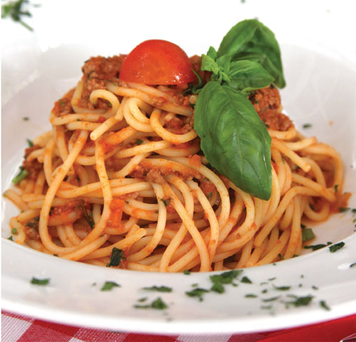 Bolonez sos için; Sos tenceresinde 2 yemek kaşığı kadar zeytinyağını ısıtın. Sırasıyla ince dilimlenmiş havuçları, soğanı atıp soteleyin. Ardından kıymayı ekleyip kavurmaya devam edin. Pembeleşen kıymalara rosemary ve kekik ekleyin. Küp doğradığınız domatesleri de ekledikten sonra 20 dakika süreyle kavurun. Servis tabağına aldığınız spagettinin üzerine bolonez sosu bolca koyup, servise sunun.