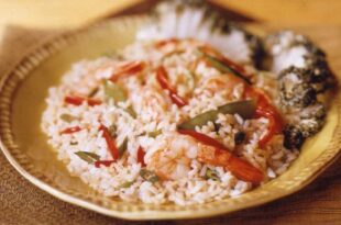 Malzemeler: 2 su bardağı dondurulmuş, pişmiş karides (çözülmüş, kabukları ve damarları temizlenmiş) 1 su bardağı haşlanmış kar bezelyesi ½ su bardağı yeşil soğan, ince dilimlenmiş ½ su bardağı kırmızı dolmalık biber, jülyen doğranmış 1 tatlı kaşığı tuz 1 tatlı kaşığı öğütülmüş karabiber ¼ su bardağı yer fıstığı yağı ¾ su bardağı Asya usulü sos Haşlanmış Pirinç Pilavı 1 su bardağı …