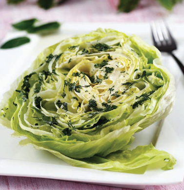 Göbek marulların dışındaki bir veya en fazla iki yaprağını ayırın. Yıkayıp süzdükten sonra enine ikiye kesin ve servis tabağına bütün olarak yerleştirin.