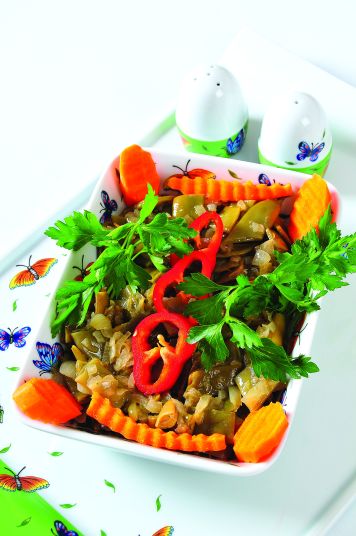 Soğanları doğrayın, yağda kavurun. Küçük küçük doğranmış fasulye turşularını ilave edin, biraz daha kavurup altını kapatın.